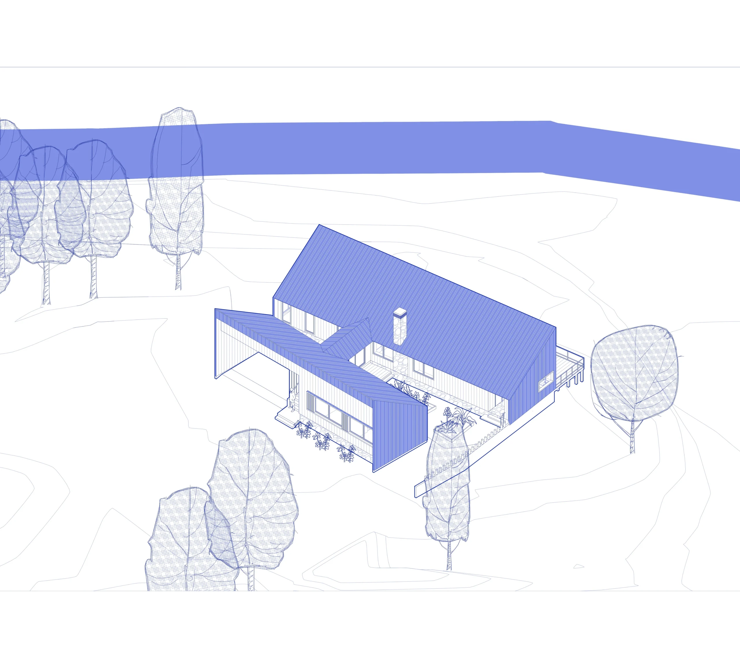 Casa Guapa, 257 m2, camino a Huape, Chillán. Arquitectos: Ismael Sandoval, Catalina Silva, German Picarte. Renderizado: Ismael Sandoval