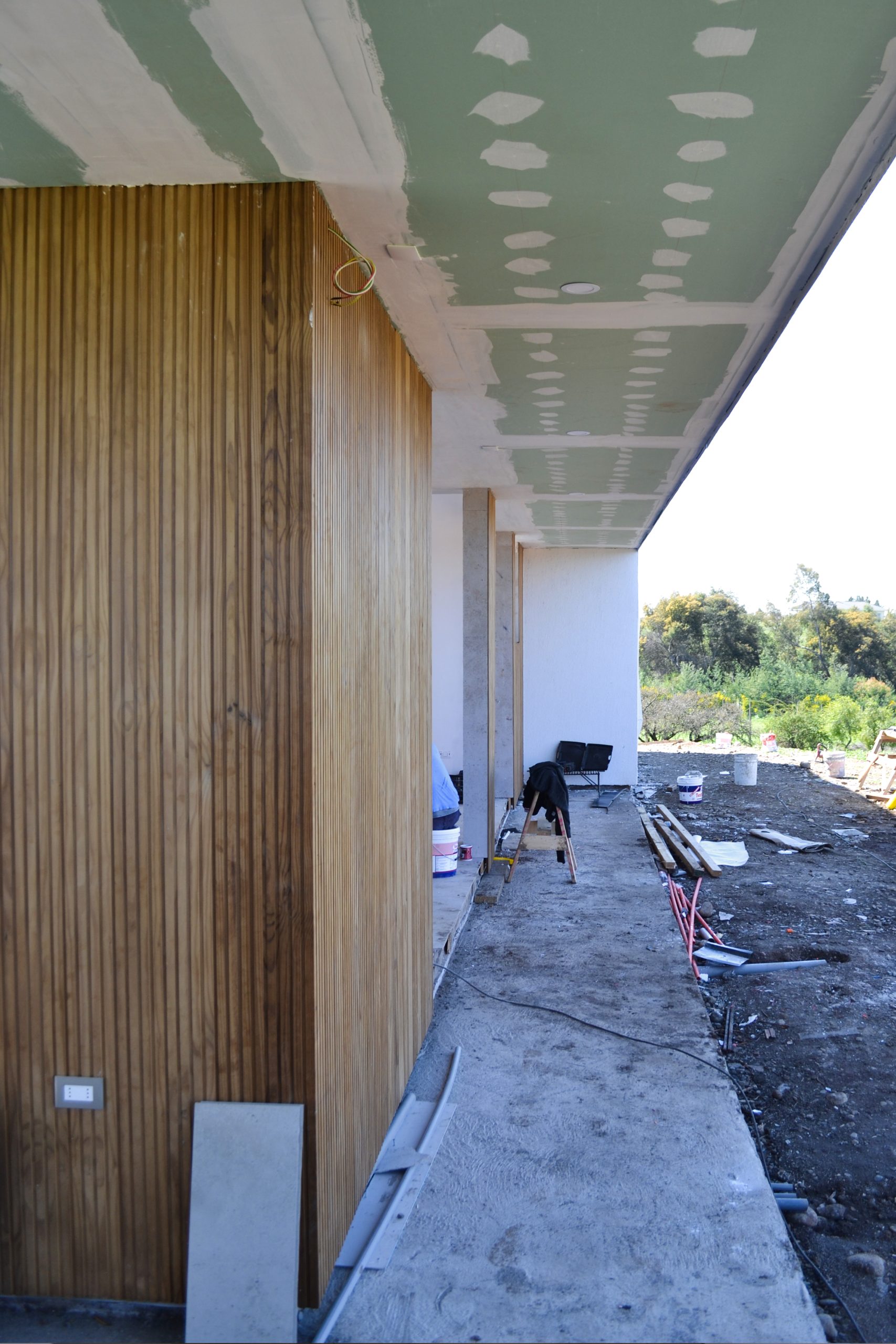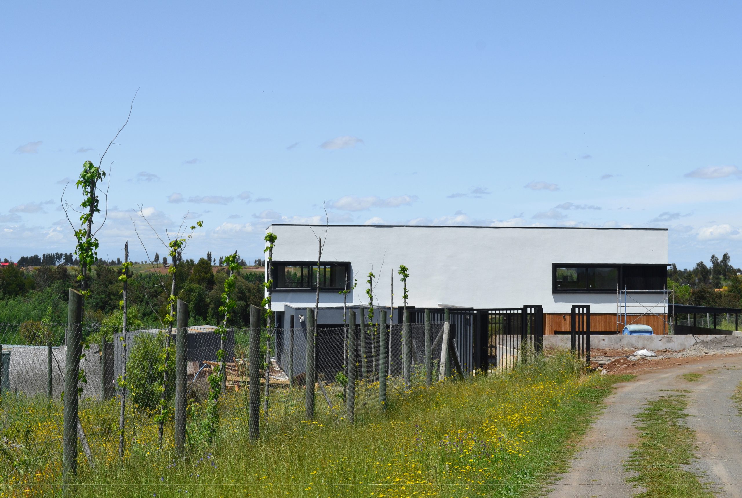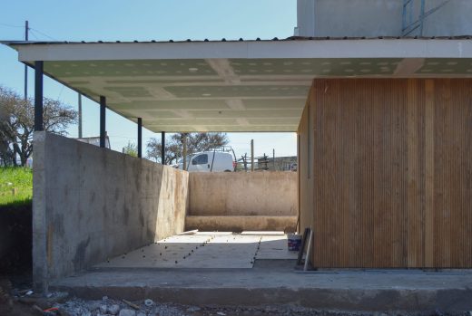 El alero es una segunda vivienda de un piso, emplazada en los verdes paisajes entre cerros y morros cercanos a la Florida. Fue diseñada para una joven pareja y padres de un pequeño, con el anhelo de tener un lugar donde disfrutar de la tranquilidad del entorno, como un descanso de la ciudad por breves estancias de tiempo. La propuesta es una búsqueda en proyectar los límites de la vivienda hacia el exterior e introducir el paisaje a la vida cotidiana y al interior. El proyecto trabaja el elemento de la techumbre con la intención de configurar un alero, que protege de los fuertes soles de verano, y da refugio de las intensas lluvias del invierno. Este mismo alero, ya en dimensiones de mayor envergadura, confecciona el acceso y terraza abierta hacia las hermosas vistas, fomentando una vida más relacionada con habitar el exterior, habitar el paisaje y el roce con la naturaleza.