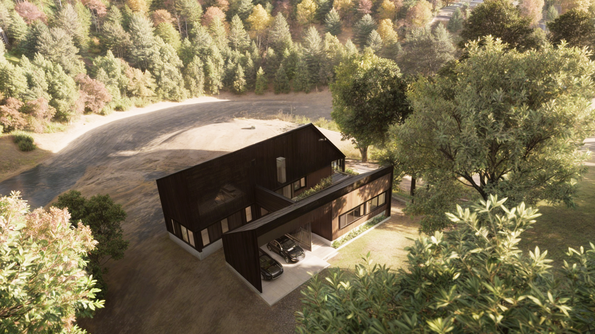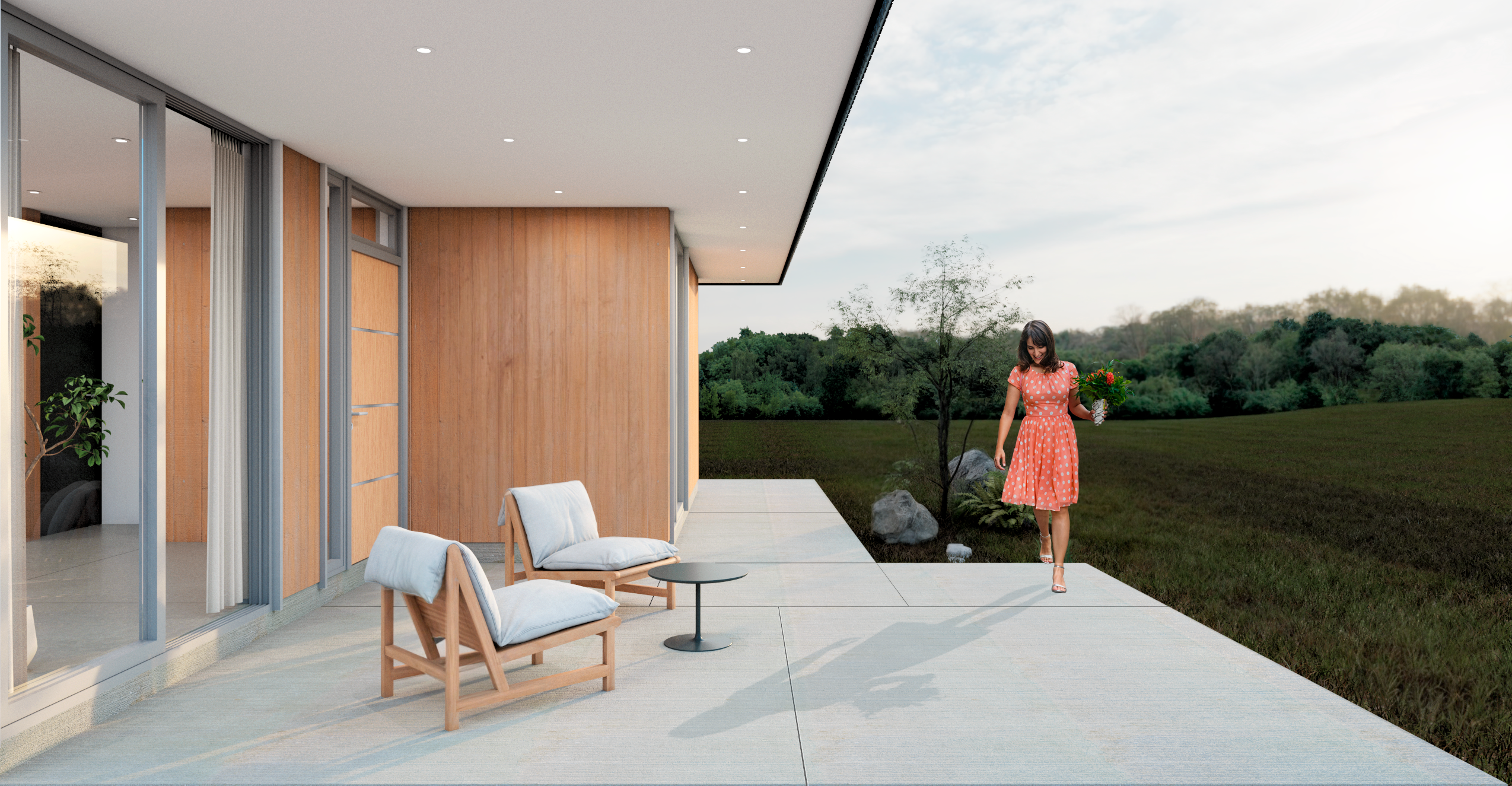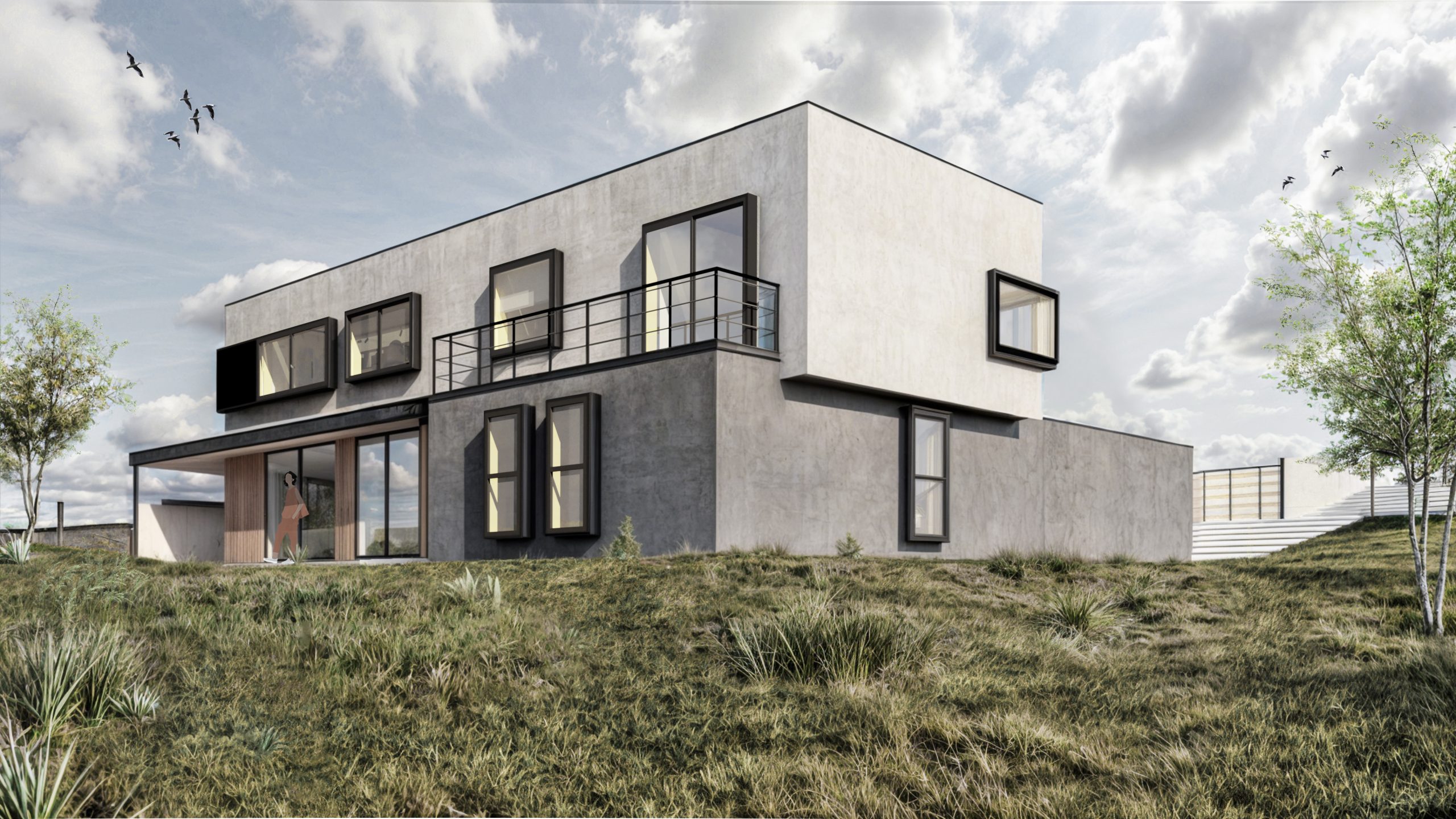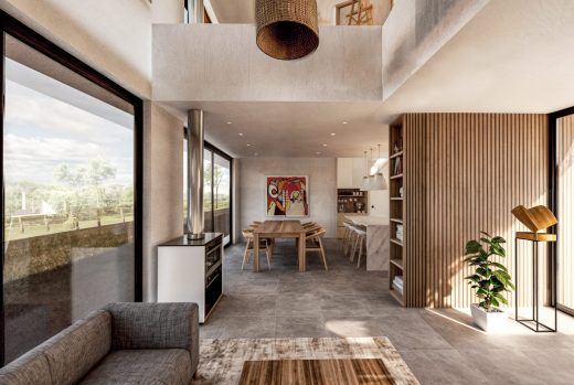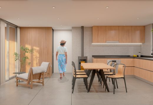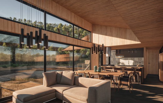 Casa Guapa, 257 m2, camino a Huape, Chillán. Arquitectos: Ismael Sandoval, Catalina Silva, German Picarte. Renderizado: Ismael Sandoval