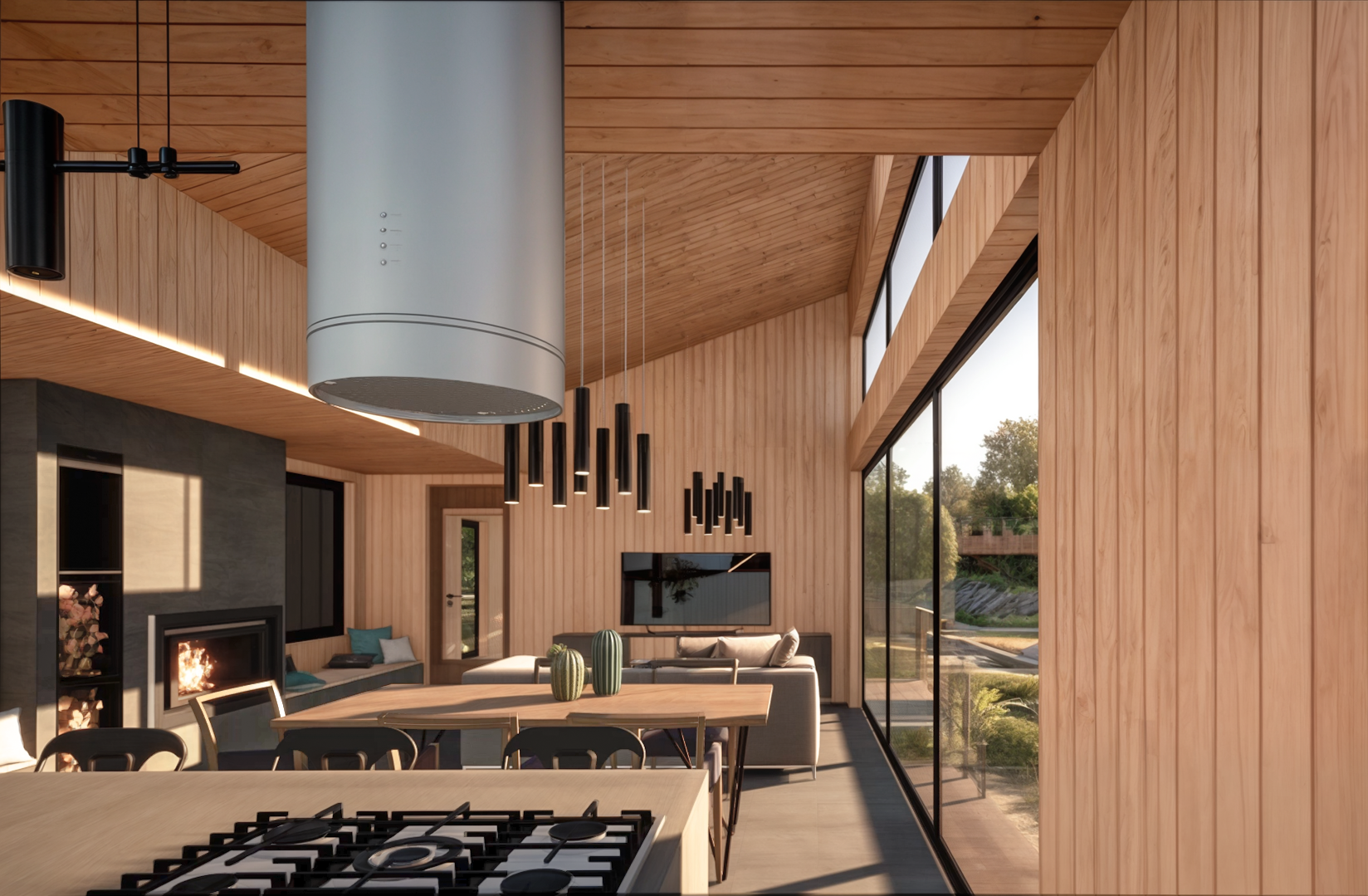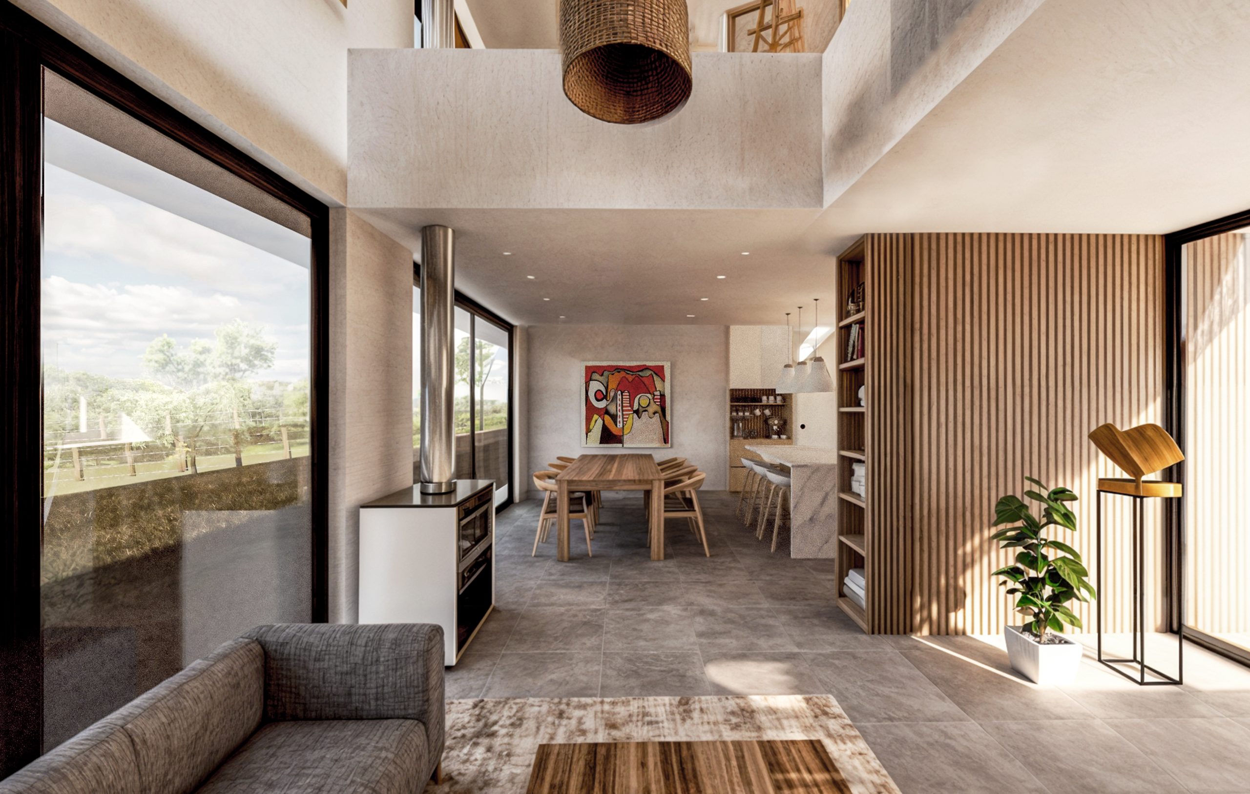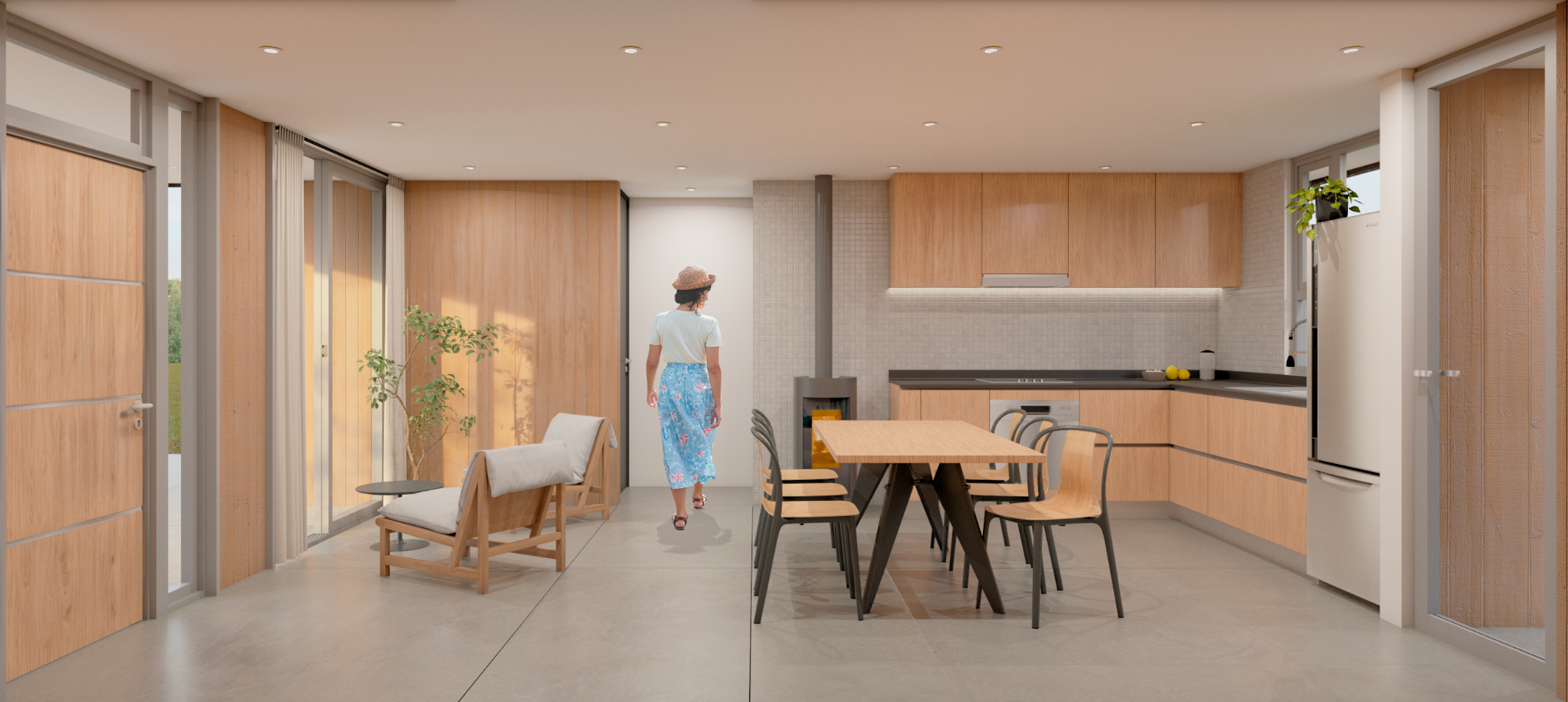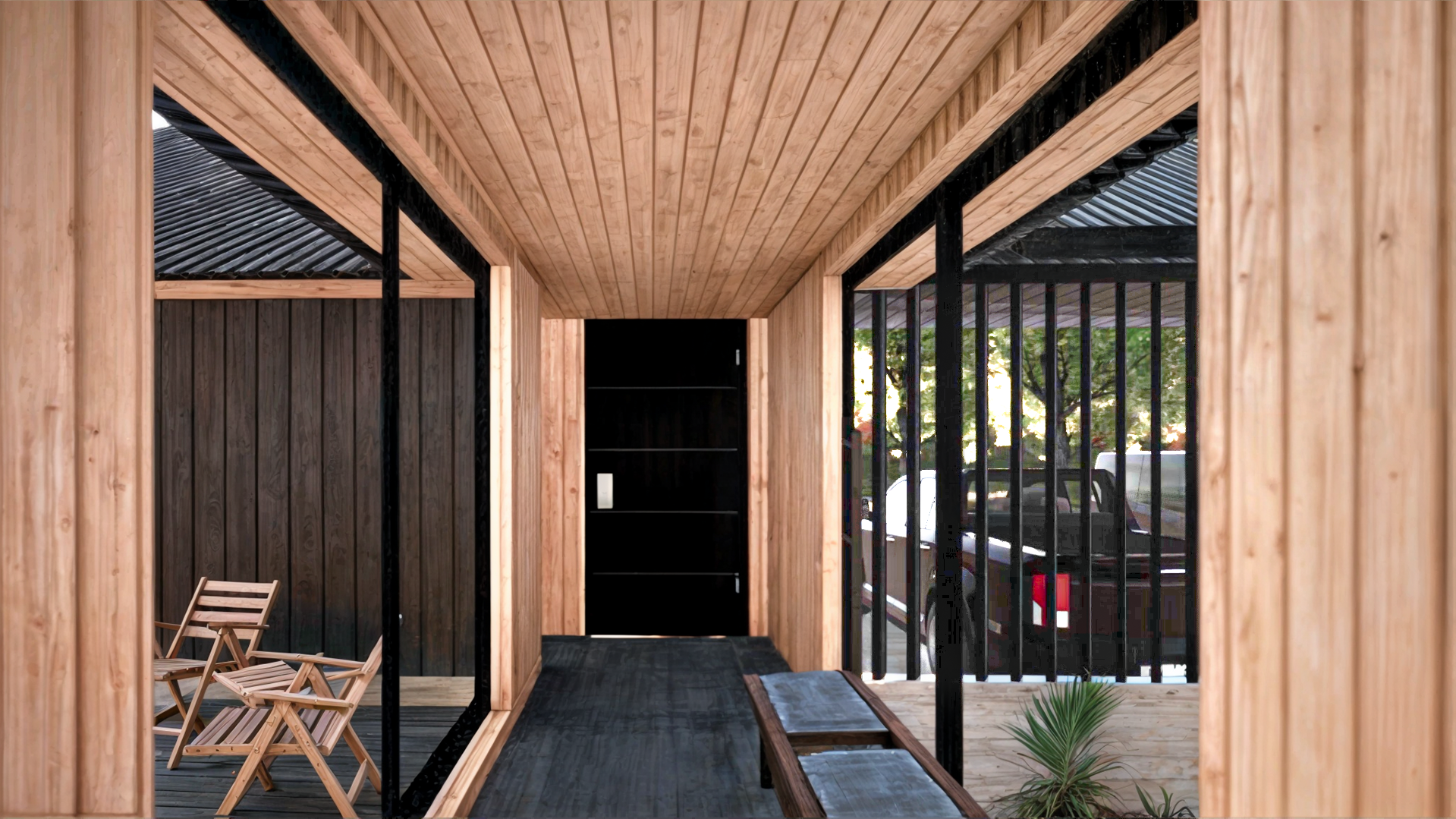 Casa Guapa, 257 m2, camino a Huape, Chillán. Arquitectos: Ismael Sandoval, Catalina Silva, German Picarte. Renderizado: Ismael Sandoval