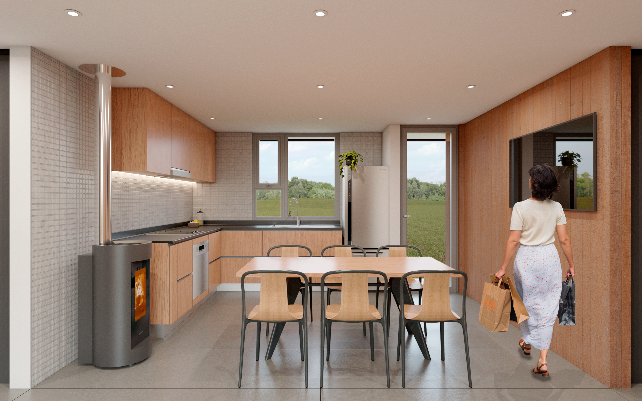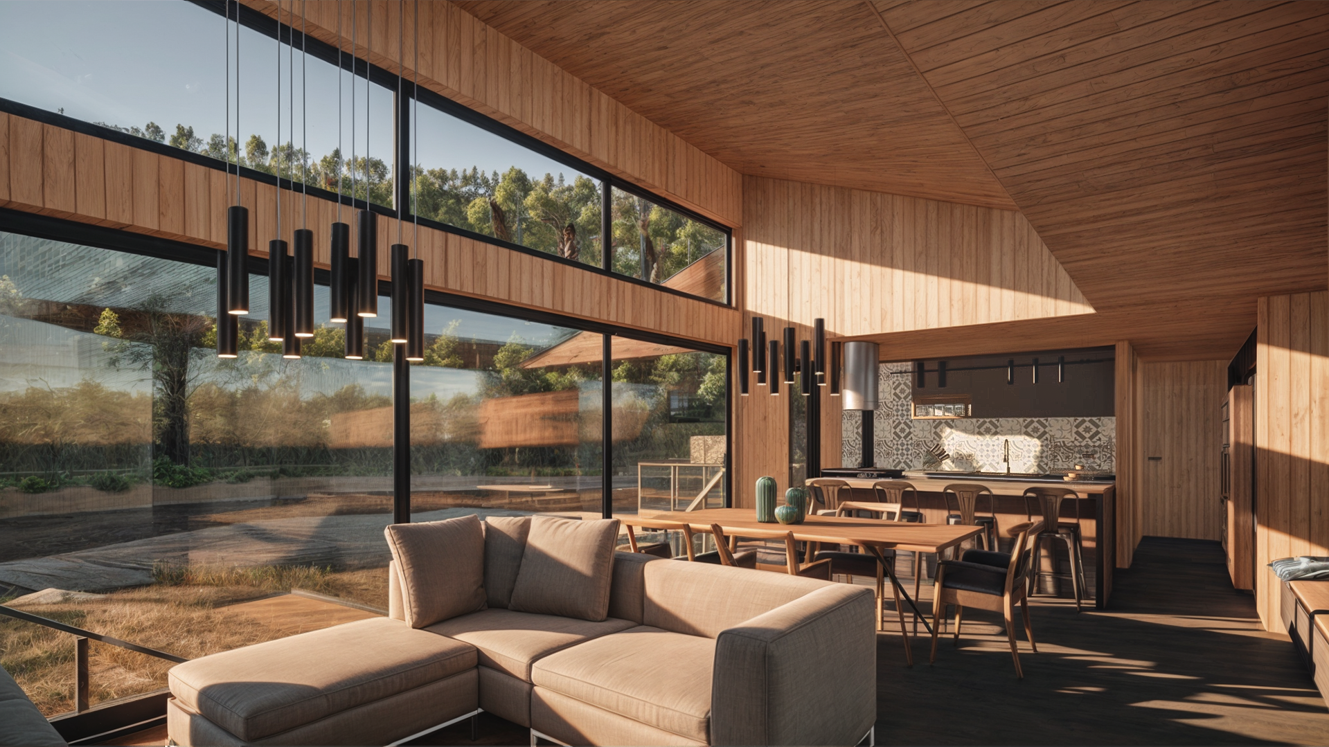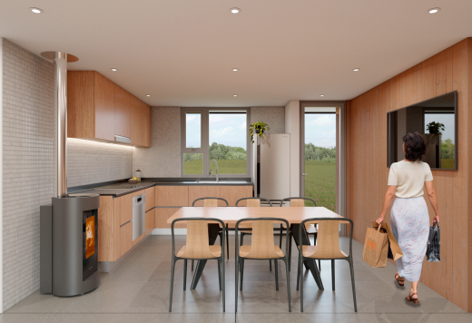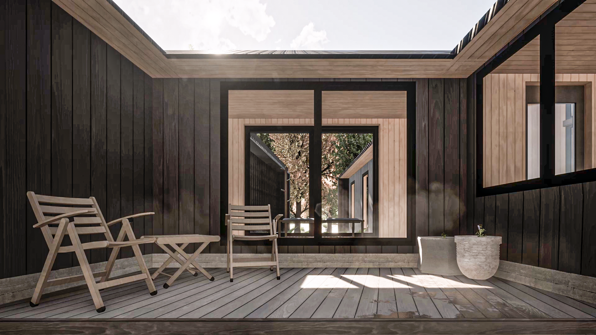 Casa Guapa, 257 m2, camino a Huape, Chillán. Arquitectos: Ismael Sandoval, Catalina Silva, German Picarte. Renderizado: Ismael Sandoval