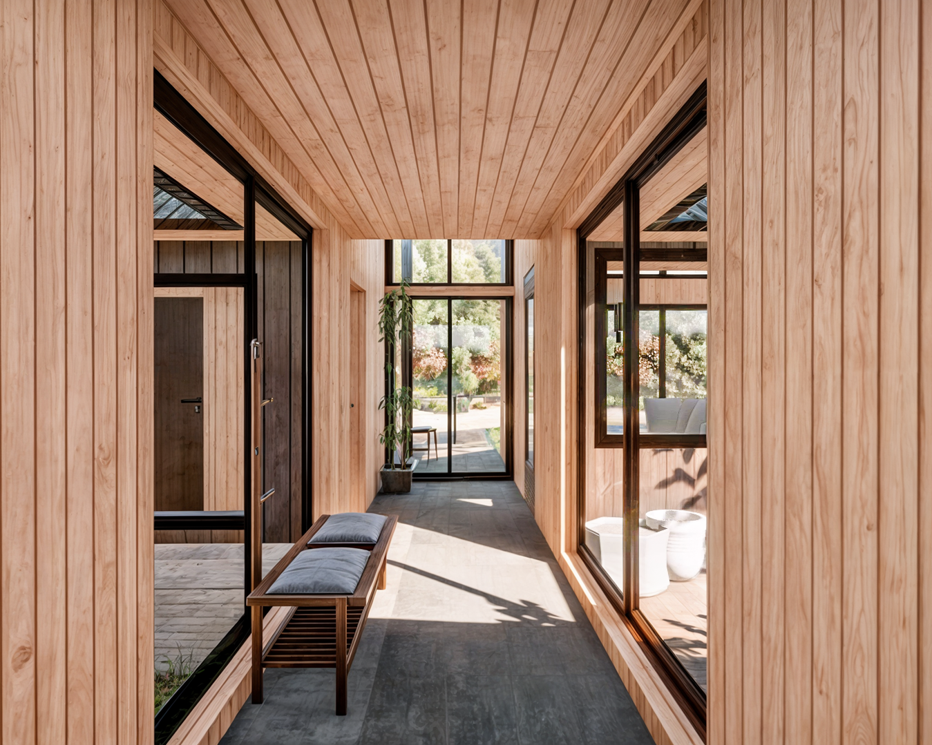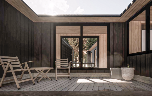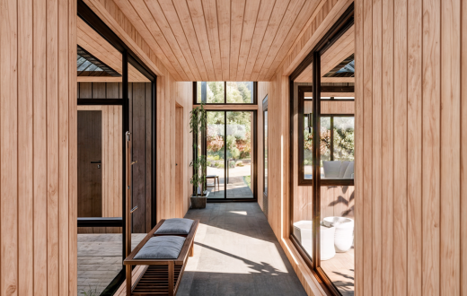 Casa Nido es una vivienda de un piso, diseñada como un refugio de retiro para una pareja, ubicada en un hermoso bosque de Coihue, a pasos de un río y montañas en la IX Región, Panguipulli. Su emplazamiento fue cuidadosamente elegido para enfatizar las vistas al Rio y el aprovechamiento lumínico según la orientación durante el invierno y el verano. Su forma contempla la división del programa en 2 volúmenes que gradual la privacidad desde el acceso, separando las habitaciones de invitados de la habitación principal. Esta disposición también permite integrar el estacionamiento vehicular, creando un acceso amplio y generando un jardín interior acogedor entre los volúmenes, con jardineras y una terraza en el patio interior. La materialidad y el mobiliario evocan la cabaña de montaña, reinterpretada de manera contemporánea, con materiales que se integran armoniosamente con el entorno natural circundante.