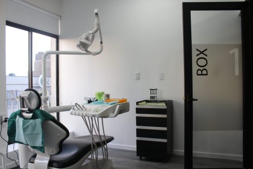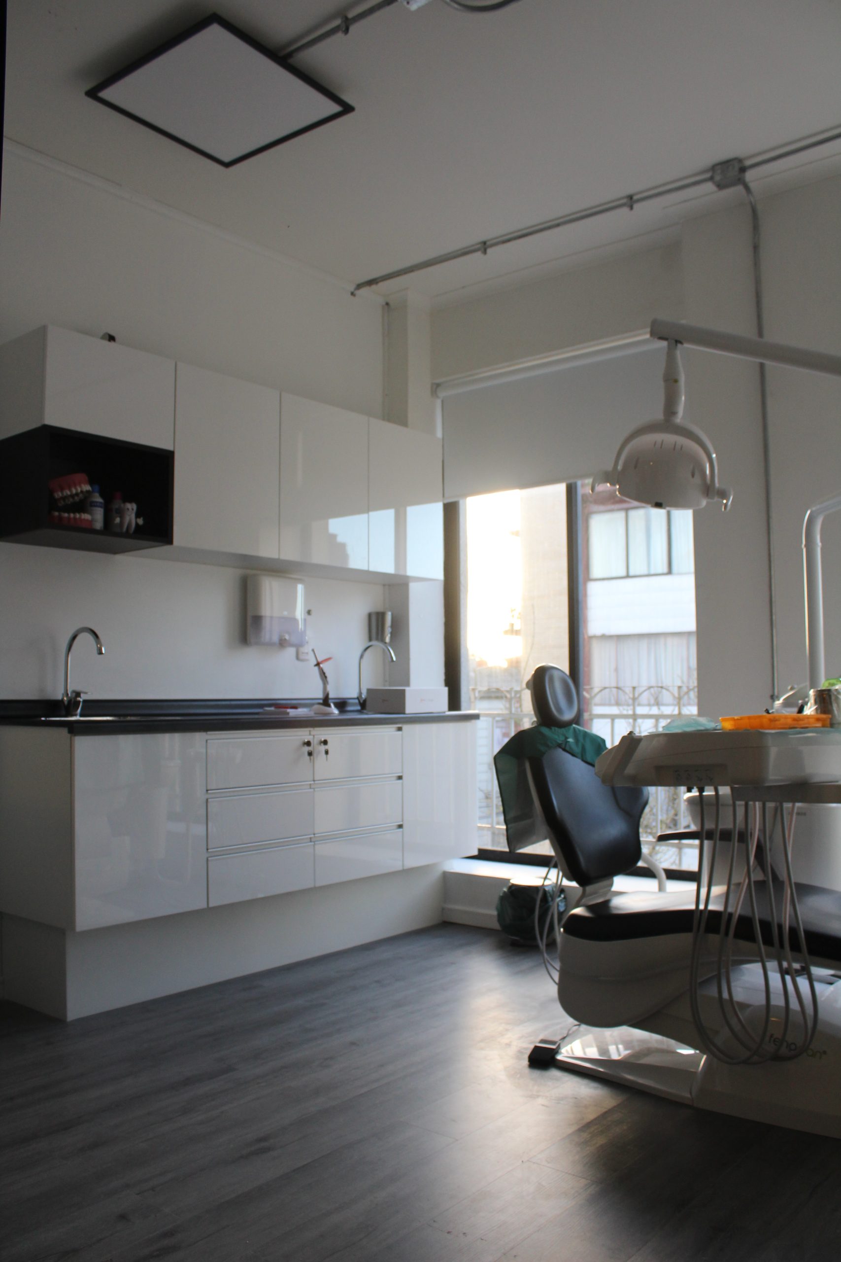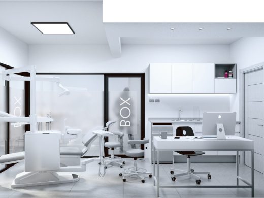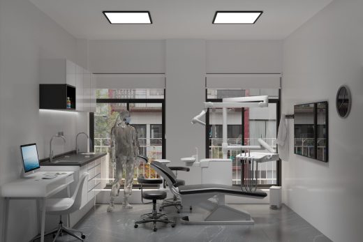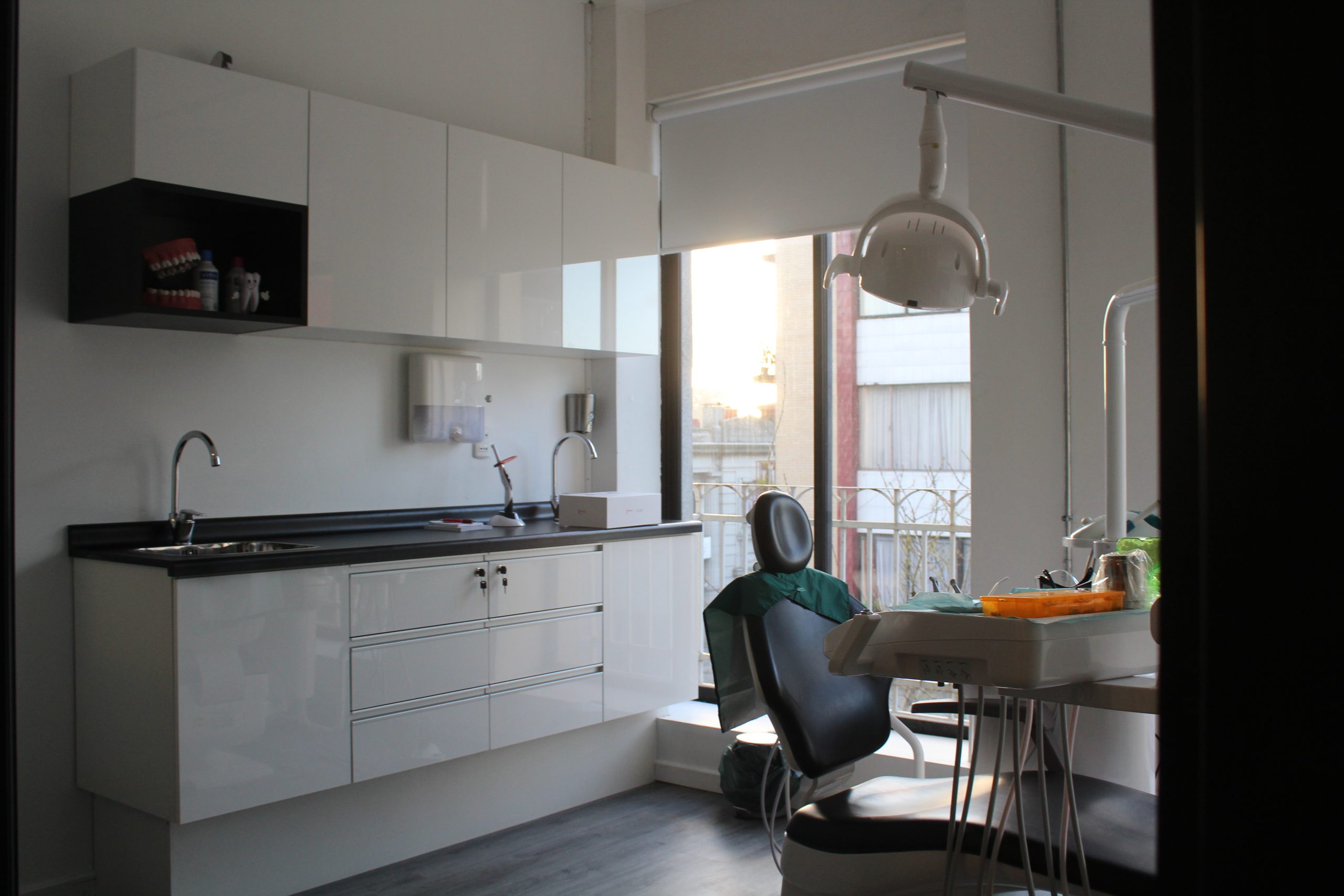 Clínica dental San Vicente, es una habilitación de un piso diseñada para una atención odontológica integral, con un enfoque en la endodoncia y en la odontopediatría. La propuesta se centra en una serie de cerramientos que van gradualmente haciendo del espacio una experiencia más estéril, controlando su iluminación, calidad del aire y sus renovaciones, para evitar vectores contaminantes. Junto con lo anterior, y a través de la transparencia, se proyectan ventanales que permiten que la luz del sol entre al espacio y haga que este se vea más amplio e iluminado. La recepción más cálida y luminosa, se contrapone con el box dental, la sala de esterilización y la sala de rayos X, que son espacios más relacionados con la higiene y lo moderno