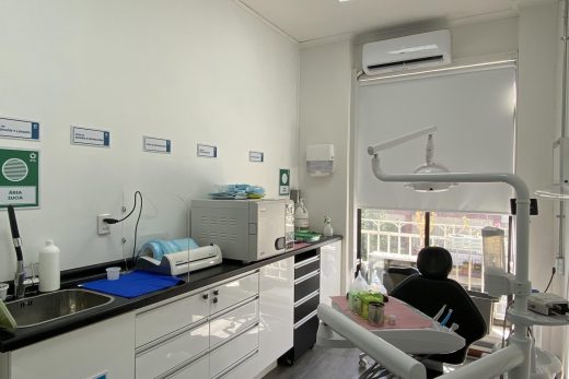 Biosur Dental es una clínica odontológica integral que se enfoca en diversas especialidades, priorizando la rehabilitación oral y el diseño de sonrisas. El proyecto se distingue por el uso de la luz solar como recurso de higiene y herramienta de trabajo. Esta decisión permite que la luz natural atraviese todo el espacio, especialmente en los box dentales, creando un ambiente saludable y acogedor. Los muebles clínicos están diseñados para separar áreas de trabajo sucias y limpias, optimizando la eficiencia y la higiene. Además, cada espacio ha sido concebido desde un enfoque accesible, asegurando comodidad para todos los pacientes.